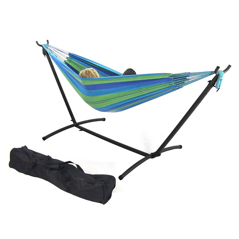 - Sunnydaze Double Cotton Brazilian Hammock & Stand Combo - Beach Oasis