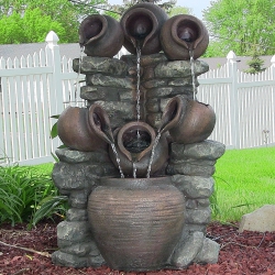 These lightweight fountains are all made from a durable layered fiberglass or resin, most of them offering a stunning stone finish over the fountain. Each fiberglass garden fountain, offering soothing water sounds, will help turn your outdoor spaces into a place you will never want to leave! With so many to choose your customers will love them all and you can rely on us as your drop shipper for outdoor fountains to ship fast!